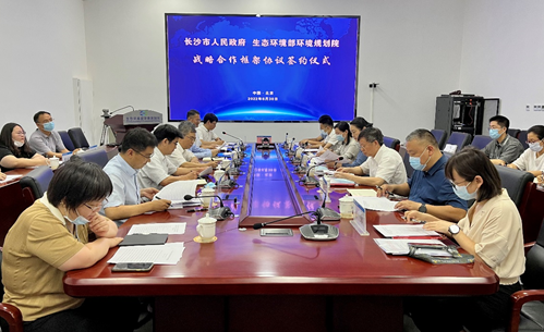 2022年6月30日,環(huán)境規(guī)劃院與長沙市人民政府簽署生態(tài)環(huán)境保護(hù)工作戰(zhàn)略合作框架協(xié)議。環(huán)境規(guī)劃院陸軍書記、王金南院長、萬軍總工、嚴(yán)剛副院長、各部門代表,長沙市人民政府劉匯副市長,長沙市生態(tài)環(huán)境局潘勝強(qiáng)局長、趙玲芳副局長等相關(guān)負(fù)責(zé)同志出席簽約儀式。 簽約儀式前,雙方開展了座談交流。長沙市生態(tài)環(huán)境局對環(huán)...