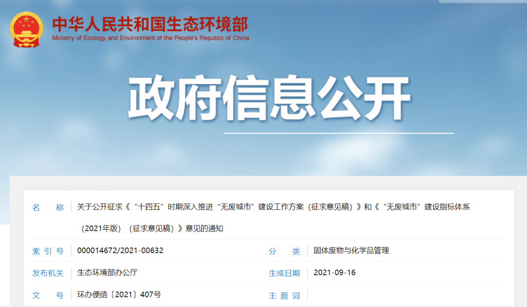 為深入打好污染防治攻堅戰(zhàn),推動形成綠色發(fā)展方式和生活方式,加強固體廢物系統(tǒng)治理,持續(xù)推進固體廢物源頭減量和資源化利用,最大限度減少填埋量,有效防范生態(tài)環(huán)境風險,指導地方做好“十四五”時期“無廢城市”建設工作,我部會同相關部門組織編制了《“十四五”時期深入推進“無廢城市”建設工作方案(征求意見稿)》和...