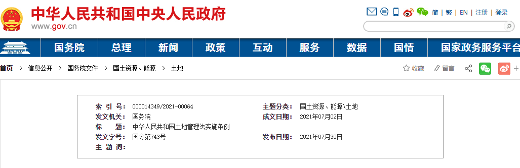 中華人民共和國國務(wù)院令第743號《中華人民共和國土地管理法實(shí)施條例》已經(jīng)2021年4月21日國務(wù)院第132次常務(wù)會議修訂通過,現(xiàn)予公布,自2021年9月1日起施行。 總理 李克強(qiáng)2021年7月2日中華人民共和國土地管理法實(shí)施條例(1998年12月27日中華人民共和國國務(wù)院令第256號發(fā)布 根據(jù)201...