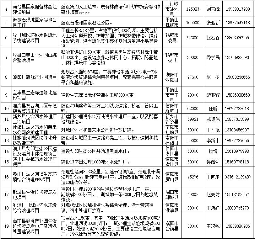 河南省2018年擬向民間資本推介項目清單(涉環(huán)保部分)