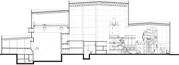 焚燒中心還具有展示、教育的社會服務功能,在廠房內部空間設置了一條生動、安全、清潔、全面的教育展示通廊和一條垃圾處理參觀廊道,參觀和展示區(qū)域與內部生產(chǎn)區(qū)域流線分開,互不干擾,并重點處理了辦公、參觀、展示和教育空間的立面表達。