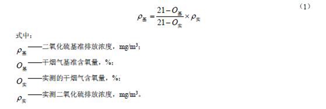 5.1.3 天然氣凈化廠硫磺回收裝置尾氣排氣筒的實(shí)測(cè)二氧化硫排放濃度,須換算成基準(zhǔn)含氧量為3%的大氣污染物基準(zhǔn)排放濃度,并與排放限值比較判定排放是否達(dá)標(biāo)。大氣污染物基準(zhǔn)排放濃度按公式(1)進(jìn)行計(jì)算。