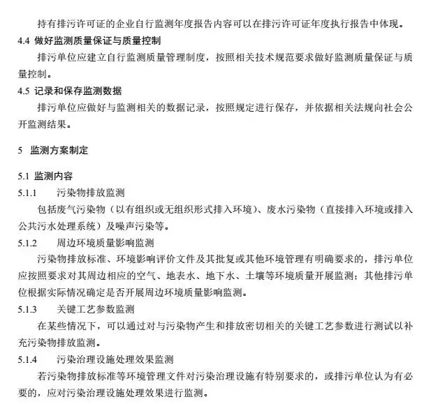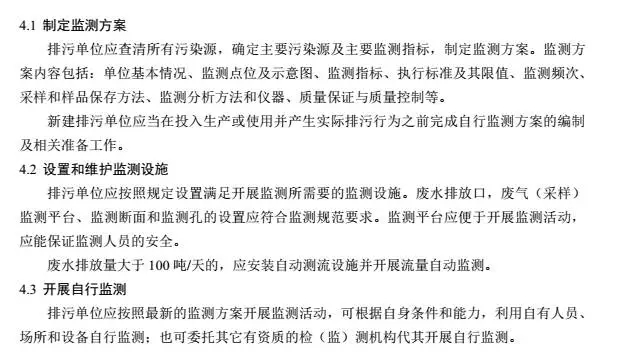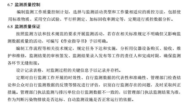 一是自行監(jiān)測的一般要求,即制定監(jiān)測方案、設(shè)置和維護(hù)監(jiān)測設(shè)施、開展自行監(jiān)測、做好監(jiān)測質(zhì)量保證與質(zhì)量控制、記錄保存和公開監(jiān)測數(shù)據(jù)的基本要求;