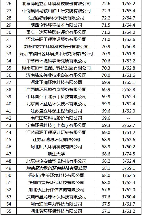 福建省內(nèi)環(huán)評機構(gòu)考核結(jié)果表