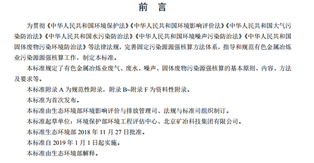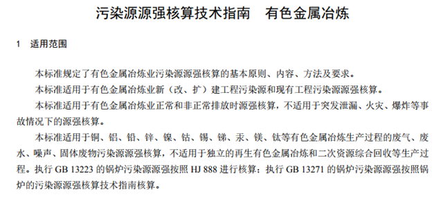 生態(tài)環(huán)境部印發(fā)《污染源源強(qiáng)核算技術(shù)指南 有色金屬冶煉》標(biāo)準(zhǔn),自2019年1月1日起正式實施,用以指導(dǎo)和規(guī)范有色金屬冶煉業(yè)污染源源強(qiáng)核算工作。全文如下: