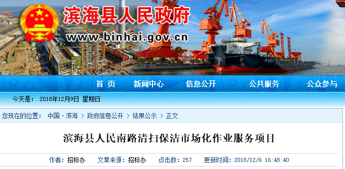 江蘇省濱海縣人民南路清掃保潔市場(chǎng)化作業(yè)服務(wù)項(xiàng)目發(fā)布中標(biāo)公告,無錫市金沙田科技有限公司成為中標(biāo)的社會(huì)資本方,報(bào)價(jià)42.8萬,服務(wù)期限365日歷天。