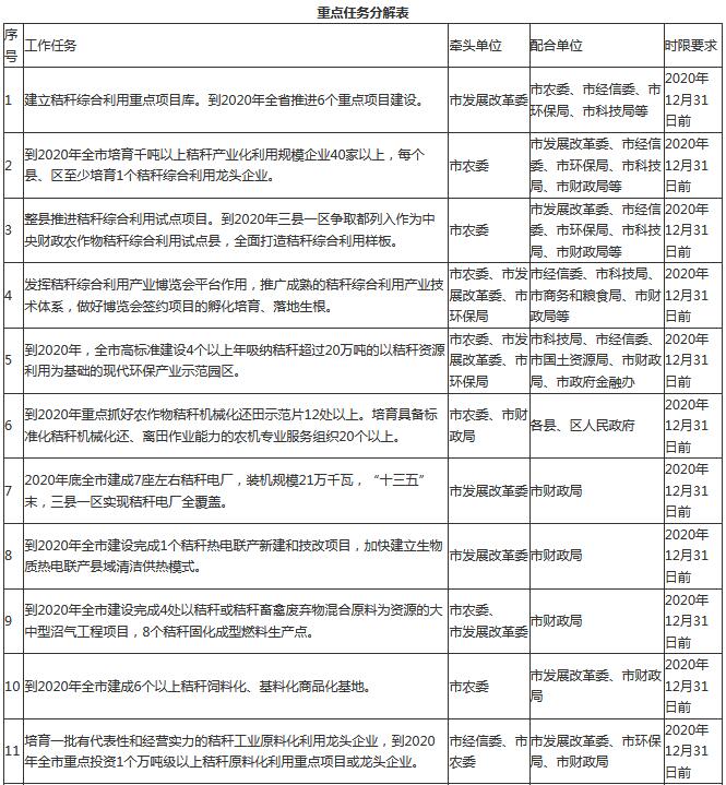 積極爭取項目。加強與省相關部委的溝通銜接,支持符合條件的企業(yè)和項目爭取各類中央、省資金和項目,帶動更多社會資本投入秸稈產業(yè)化利用領域。(牽頭單位:市發(fā)展改革委、市農委;配合單位:市環(huán)保局、市科技局、市經信委、市財政局)