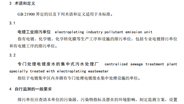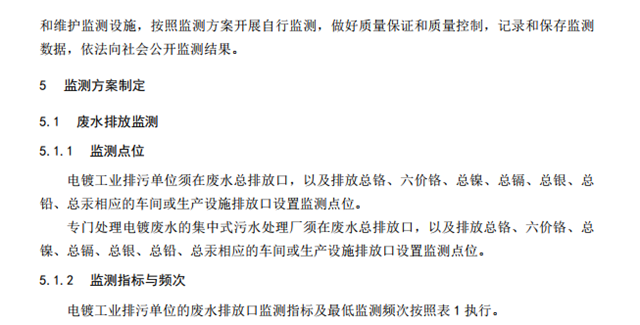 生態(tài)環(huán)境部印發(fā)《排污單位自行監(jiān)測技術(shù)指南 電鍍工業(yè)》標準,提出了電鍍工業(yè)排污單位以及專門處理電鍍廢水的集中式污水處理廠自行監(jiān)測的一般要求、監(jiān)測方案制定、信息記錄和報告的基本內(nèi)容和要求。