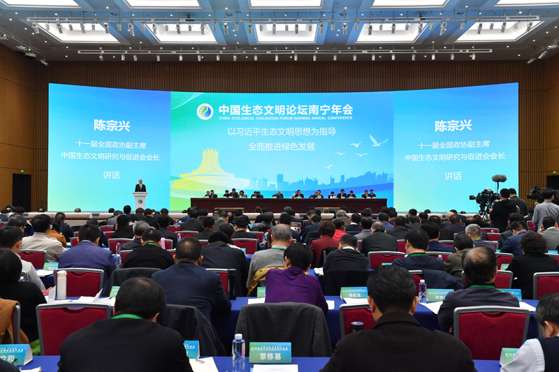 12月15日至16日,中國(guó)生態(tài)文明論壇年會(huì)在廣西壯族自治區(qū)南寧市召開(kāi)。本次會(huì)議以“生態(tài)文明 綠色發(fā)展——深入學(xué)習(xí)貫徹習(xí)近平生態(tài)文明思想 建設(shè)天藍(lán)、地綠、水清的美麗中國(guó)”為主題。十一屆全國(guó)政協(xié)副主席、中國(guó)生態(tài)文明研究與促進(jìn)會(huì)會(huì)長(zhǎng)陳宗興,生態(tài)環(huán)境部黨組書(shū)記、部長(zhǎng)李干杰出席開(kāi)幕式并講話(huà),廣西壯族自治區(qū)黨委副書(shū)記、人民政府主席陳武,廣西壯族自治區(qū)黨委常委、南寧市委書(shū)記王小東出席開(kāi)幕式并致辭。生態(tài)環(huán)境部副部長(zhǎng)黃潤(rùn)秋主持開(kāi)幕式。