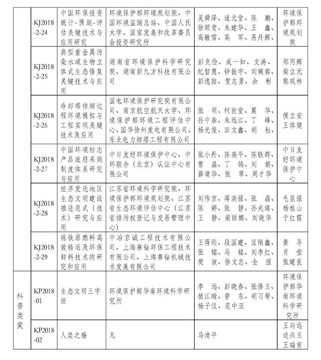 關(guān)于2018年度環(huán)境保護(hù)科學(xué)技術(shù)獎擬授獎項目的公示