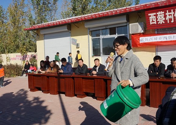 西蔡村的垃圾分類最終在2018年10月27號正式啟動。村里人幾乎都來了,六十多歲的村支書在啟動儀式上宣布:“今天我村啟動垃圾分類,將西蔡村治理擴展到資源循環(huán)利用的層面,踐行習(xí)近平主席建設(shè)生態(tài)文明、振興鄉(xiāng)村的偉大戰(zhàn)略!” 縣農(nóng)工委、城管局、桑德公司和西城鄉(xiāng)政府都來了代表。西城鄉(xiāng)鄉(xiāng)長說: “參加過大大小小各種儀式,垃圾分類啟動儀式是第一次見。”