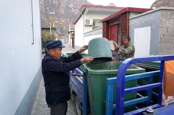 2018年10月24日,河北省保定市淶水縣南峪村,清潔人員正挨家挨戶進行垃圾收運。攝影:王學(xué)琛