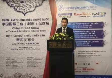 “中國(guó)國(guó)際工業(yè)(越南)品牌展”由中華人民共和國(guó)商務(wù)部主辦,中華人民共和國(guó)商務(wù)部外貿(mào)發(fā)展事務(wù)局承辦,中國(guó)化工信息中心協(xié)辦。商務(wù)部外貿(mào)發(fā)展局國(guó)際展覽處處長(zhǎng)苗華偉先生出席發(fā)布會(huì)并致歡迎辭,中國(guó)化工信息中心副主任揭玉斌先生出席發(fā)布會(huì)并致開幕詞,越南工業(yè)和貿(mào)易部、越南紙漿及造紙工業(yè)協(xié)會(huì)、越南橡膠協(xié)會(huì)、胡志明橡塑工業(yè)生產(chǎn)商協(xié)會(huì)領(lǐng)導(dǎo)受邀出席會(huì)議并發(fā)言,近160位展商代表及媒體朋友出席發(fā)布會(huì)活動(dòng)。