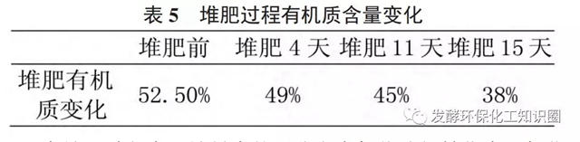 堆肥過(guò)程中有機(jī)質(zhì)變化見(jiàn)表5。