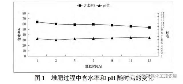 堆肥過(guò)程中含水率和PH值的變化見(jiàn)圖1所示。