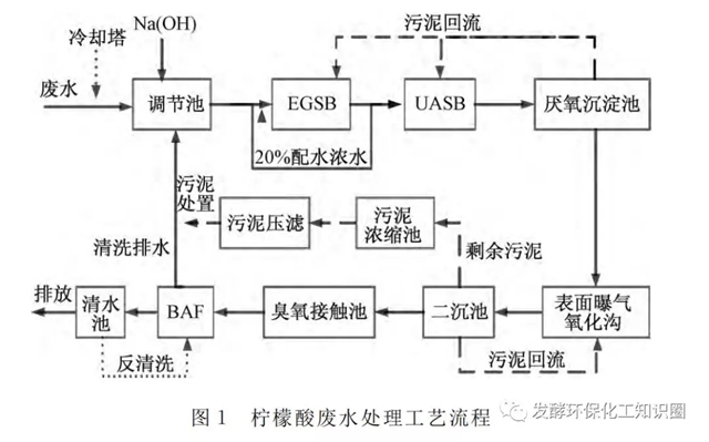 兩級(jí)厭氧-好氧-深度處理工藝處理檸檬酸廢水