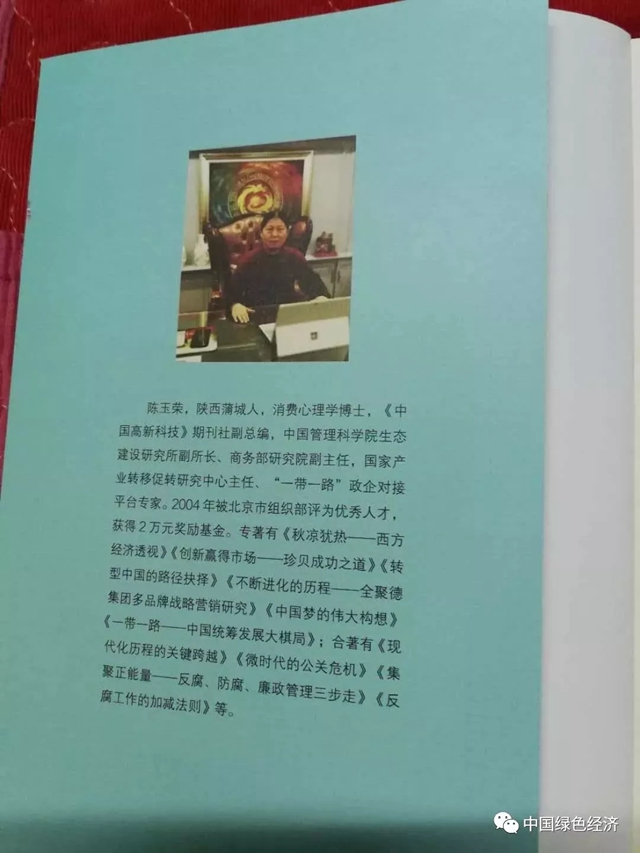 陳玉榮,消費心理學(xué)博士、MBA工商管理碩士、經(jīng)濟學(xué)碩士,曾在原國家主席李先念同志秘書、國家統(tǒng)計局原局長李成瑞同志身邊從事過私人助理工作;在國家計委對外經(jīng)濟研究所、商務(wù)部國際經(jīng)濟貿(mào)易合作研究院、北京大學(xué)城市規(guī)劃研究所等從事過研究和頂層設(shè)計規(guī)劃等工作;在中國企業(yè)報、中國信息報和中國投資促進雜志擔任過副主編工作;在著名民營企業(yè)匹夫品牌管理集團、珍貝集團、聯(lián)想集團、國度投資集團等從事總裁助理兼企劃部長工作等。2004年被北京市組織部評為優(yōu)秀人才稱號?,F(xiàn)任全國三農(nóng)調(diào)研中心副主任、國家產(chǎn)業(yè)轉(zhuǎn)移促進中心高級顧問等。出版專著作品有《秋涼猶熱:西方經(jīng)濟透視》、《理想與改革:社會主義的改革歷程》、《不斷進化的經(jīng)營:全聚德集團多品牌戰(zhàn)略營銷》、《轉(zhuǎn)型中國的路徑抉擇》、《中國夢的偉大構(gòu)想》、《一帶一路:中國統(tǒng)籌發(fā)展大棋局》、《藍色跨越:中國海洋強國的生態(tài)邏輯》等;出版合著作品有:《集聚正能量:反腐、防腐、廉政管理三步走》、《現(xiàn)代化進程的跨越:貧富差距與犯罪率》、《微時代的危機公關(guān)》、《政府反腐工作的加減法則》等書,發(fā)表關(guān)于綠色經(jīng)濟、政治、貿(mào)易、投資、管理、營銷、戰(zhàn)略規(guī)劃等論文300多篇。新近出版的《一帶一路:中國統(tǒng)籌發(fā)展大棋局》一書被國家新聞出版署列入重大選題備案,歡迎關(guān)注。