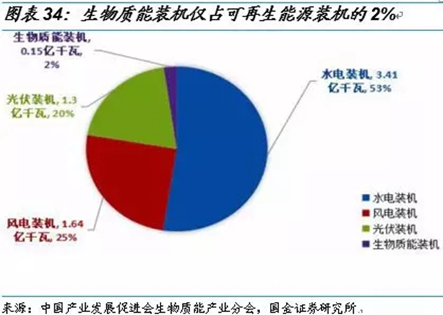 2017年生物質(zhì)發(fā)電量占總發(fā)電量的1.2%。截至2017 年12 月31 日,全國可再生能源發(fā)電裝機容量6.5億千瓦,占總電力裝機的36.6%。其中水電裝機(含抽水蓄能)3.41億千瓦,風電裝機1.64億千瓦,光伏發(fā)電裝機1.3億千瓦,生物質(zhì)發(fā)電裝機1476萬千瓦。2017 年全國總發(fā)電量65000 億千瓦時,其中可再生能源發(fā)電量16979 億千瓦時,占總發(fā)電量的26.1%。其中水電發(fā)電量11945 億千瓦時,占總發(fā)電量的18.4%,風電發(fā)電量3057 億千瓦時,占總發(fā)電量的4.7%,光伏發(fā)電量1182 億千瓦時,占總發(fā)電量的1.8%,生物質(zhì)發(fā)電量795 億千瓦時,占總發(fā)電量的1.2%。