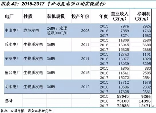 單個項目盈利水平高,每個生物質(zhì)電廠年均凈利接近3000萬。我們統(tǒng)計了近三年的公司生物質(zhì)發(fā)電廠及中山垃圾發(fā)電廠的盈利情況,五個電廠的年均凈利達到了2724萬,其中四個生物質(zhì)發(fā)電廠的年均凈利達到了2896萬元。所有投產(chǎn)項目均已連續(xù)盈利,項目的平均收益超出預期。