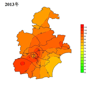 6項(xiàng)主要污染物中,PM2.5等5項(xiàng)均明顯改善;可吸入顆粒物(PM10)、二氧化硫(SO2)、二氧化氮(NO2)和一氧化碳(CO)年均濃度分別為82微克/立方米、12微克/立方米、47微克/立方米和1.9毫克/立方米,較2017年下降幅度分別為12.8%、25.0%、6.0%和32.1%;臭氧(O3)濃度同比上升4.7%。2018年達(dá)標(biāo)天數(shù)207天,達(dá)標(biāo)比例58.1%,同比上升0.2個(gè)百分點(diǎn)。