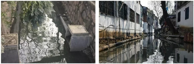青龍河地處待拆遷中心區(qū)域,匯水面積0.35km2,區(qū)域內(nèi)無(wú)污水收集設(shè)施。自2013年虎丘地區(qū)綜合改造項(xiàng)目啟動(dòng)以來(lái),由于拆遷進(jìn)展緩慢,區(qū)內(nèi)規(guī)劃污水管網(wǎng)無(wú)法建設(shè)。據(jù)調(diào)查,青龍河周邊排水為雨污合流,兩側(cè)的居民生活污水直接或間接經(jīng)過(guò)化糞池下滲或經(jīng)合流管網(wǎng)最終排入到青龍河。沿岸共排查出6處較大的雨污合流排放口,在晴天均有生活污水不斷排入河道,共有直排點(diǎn)135處,管徑為DN50-DN300不等,兩側(cè)居民生活污水、商業(yè)餐飲污水和婚紗加工污水全部入河。