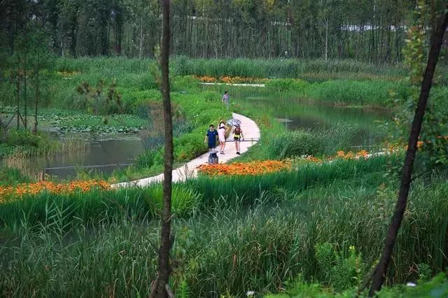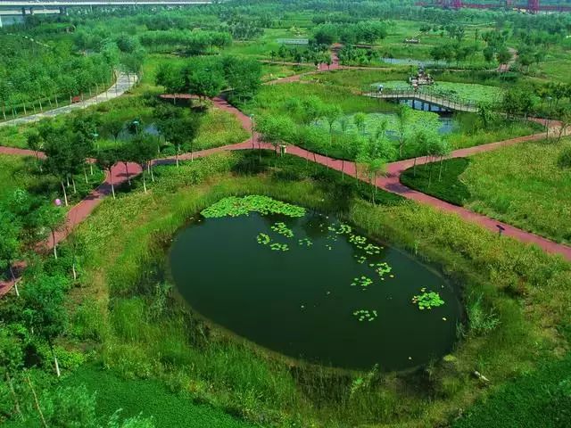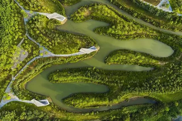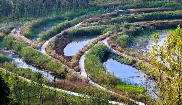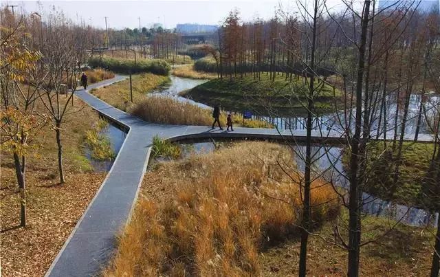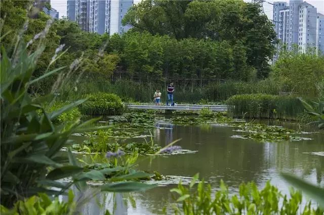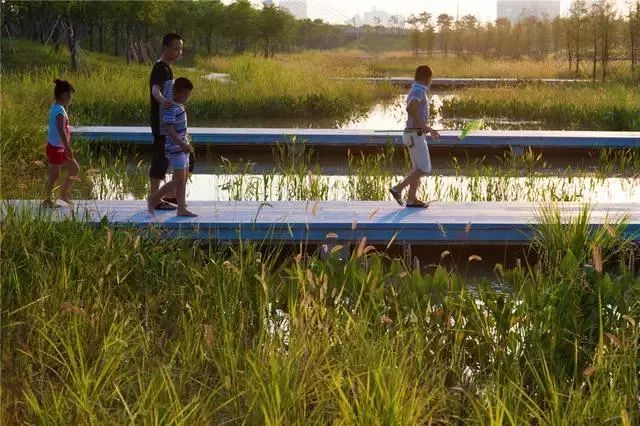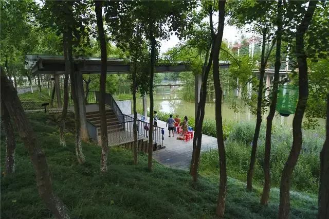 經(jīng)過(guò)巧妙的設(shè)計(jì),使魚(yú)塘成為水體凈化器,并引入林叢、棧道、廊橋和亭臺(tái), 通過(guò)最少的干預(yù),使之成為新城的“生態(tài)海綿”,凈化被污染的運(yùn)河的水體、緩解城市內(nèi)澇,保留場(chǎng)地記憶,同時(shí)為周邊居民提供了別具特色的休憩空間。