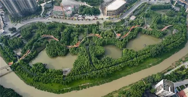 設(shè)計(jì)綜合運(yùn)用雨洪生態(tài)管理的滲透、滯蓄和凈化技術(shù),以及與水為友的適應(yīng)性設(shè)計(jì),并結(jié)合污染和硬化河道的生態(tài)修復(fù),用最少的錢(qián)干預(yù),保留現(xiàn)狀植被,融入藝術(shù)裝置和慢行系統(tǒng),并將生態(tài)建設(shè)與城市開(kāi)發(fā)相結(jié)合,構(gòu)建了一條貫穿城市的、低維護(hù)的生態(tài)綠道,為城市提供全面的生態(tài)系統(tǒng)服務(wù)。