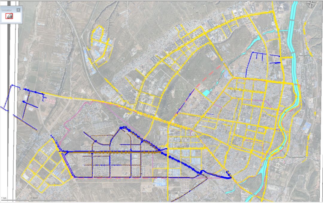 提到排水的時候,往往大家看到的就是這些大型管道。這是我們一個項(xiàng)目的圖。所有黃色的線、藍(lán)色的線,都是一段一段的管道,一個一個的點(diǎn),都是排水口。