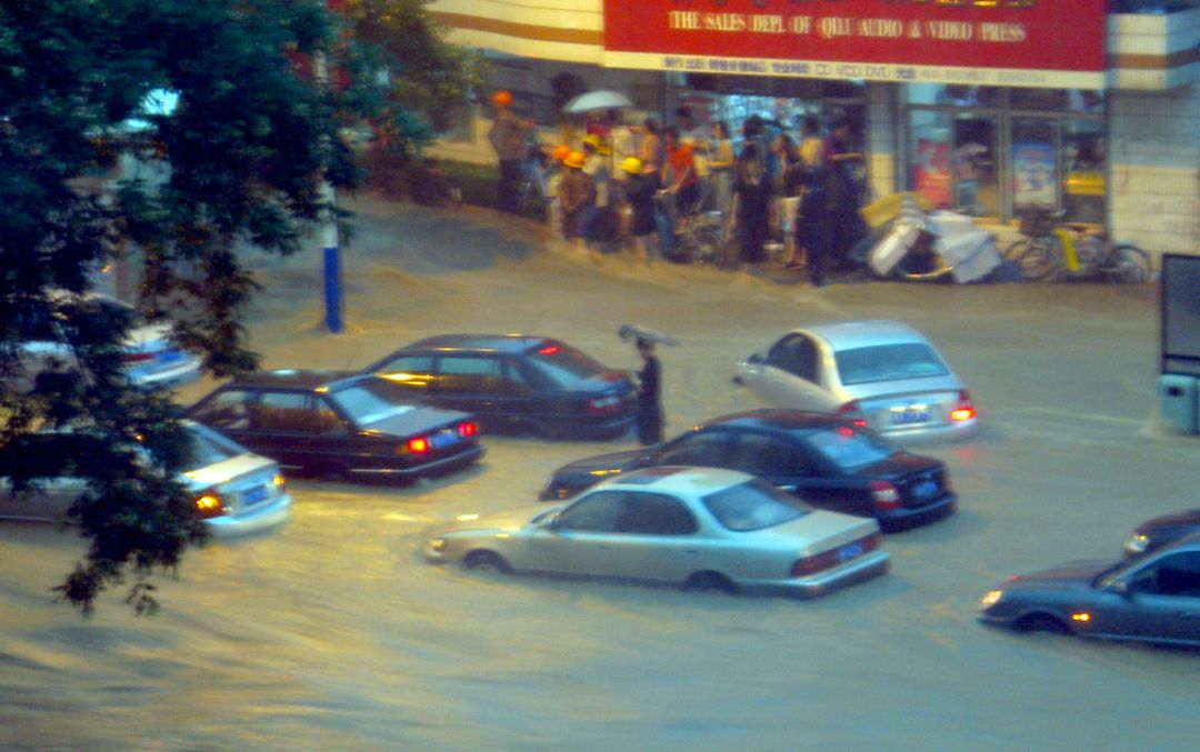 這是2007年,濟(jì)南的一場暴雨。151毫米的雨水,一到兩個小時內(nèi),嘩一下都下來了,在馬路上形成一道道洪水。很多車被沖散了,也有人失去了生命。