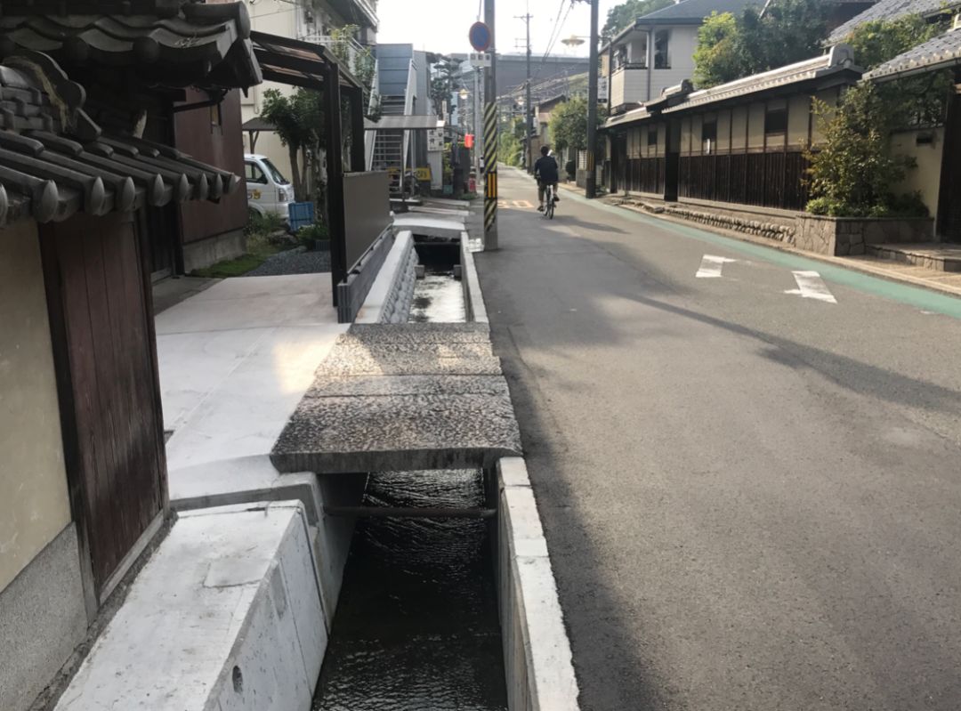 這是我們在京都拍到的一個溝。這種溝我們在日本經(jīng)常看到,國內(nèi)已經(jīng)慢慢看不到了。地面的水會流到這個雨水口,再流到溝渠里。最簡單的方法就是放一個擋板,把垃圾存在這兒,再定期去清理它。