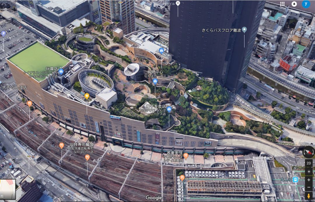 接下來看我們的鄰國,日本。難波的這個項(xiàng)目在日本大阪,大家看到的是一個購物中心。我強(qiáng)烈建議大家,游覽的時候從一樓走到七樓,這是一個屋頂綠化獲獎的項(xiàng)目。