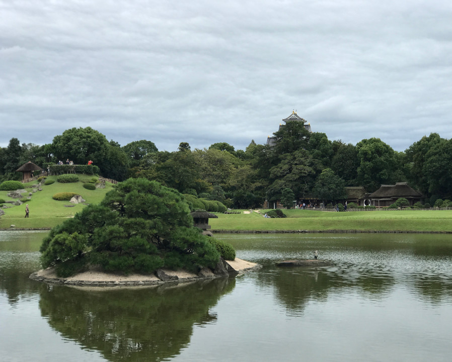 我們看了密集的城區(qū)以后,還去了岡山后樂園,是一個著名的古典園林。日本很多園林里都有碎石沙子鋪成的小路,我們當(dāng)時一直在想,下雨的話要怎么去清理這些石頭?因?yàn)榍謇砗拖礈焓^是很麻煩的。