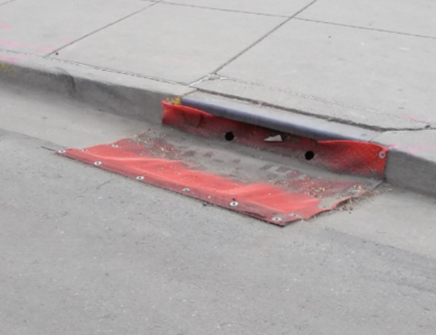 這張圖片也是丹佛。我們剛才說在綠地和綠地之間,預(yù)留出徑流的通道,方法很簡單,讓兩邊道路往中間傾斜,開幾個小孔,就有了水可以走的路線。