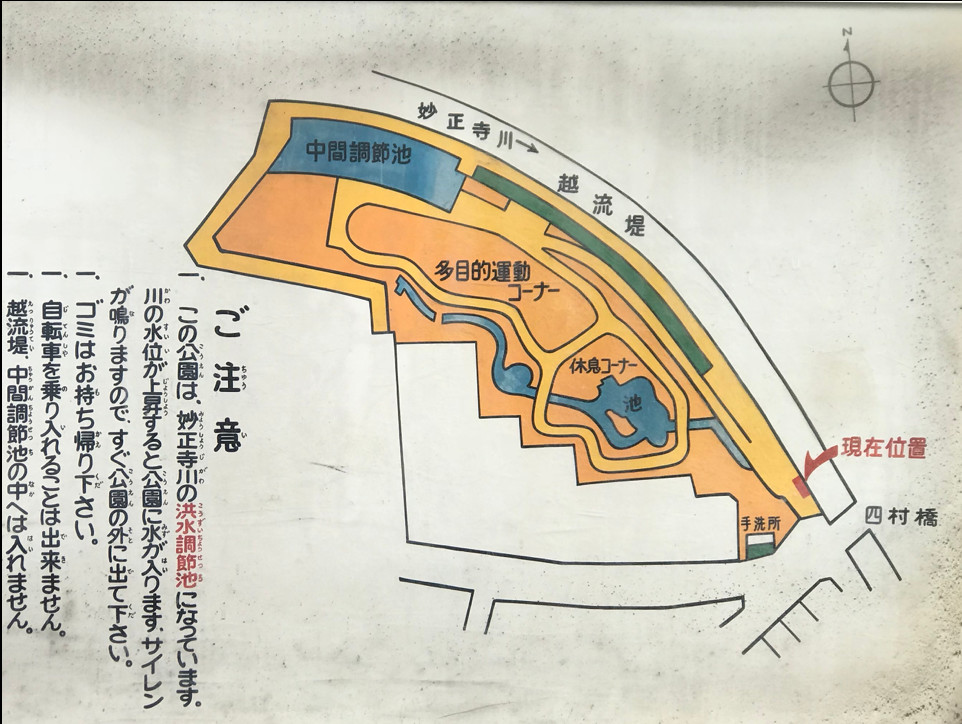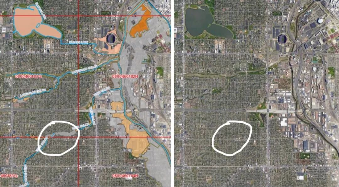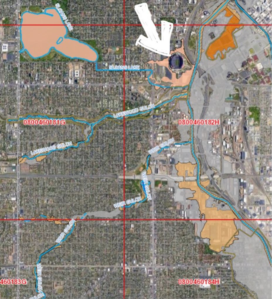 我們可以注意到中間有一個體育館,這個體育館在暴雨的時候是會被淹沒的。