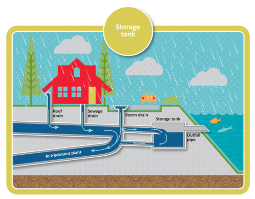 今天的第二個知識點(diǎn),叫合流制。以前沒有那么多費(fèi)用的時候,我們會把雨水和污水放到同一條溝里排出去。