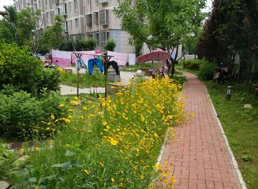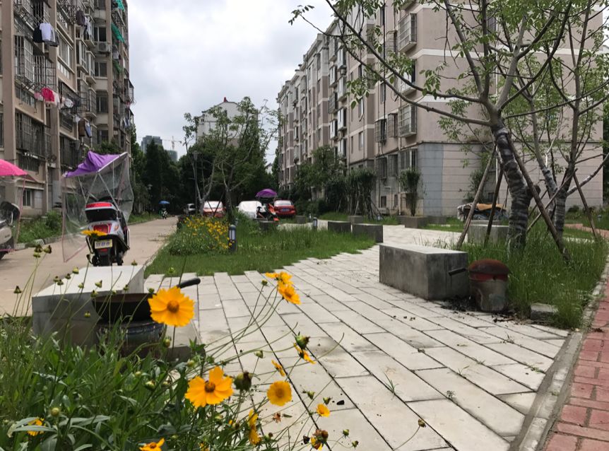 我們原先覺得這個情況還挺糟糕的,但到了第三年的時候,發(fā)現(xiàn)位置做得不對的雨水花園消失了,位置對的留下來了,大家還挺愿意用。慢慢地這個小區(qū)變成了現(xiàn)在這樣,它不是我們理想中的狀態(tài),但確實(shí)起到了很大作用,最終我們的設(shè)施和居民相互融合了。