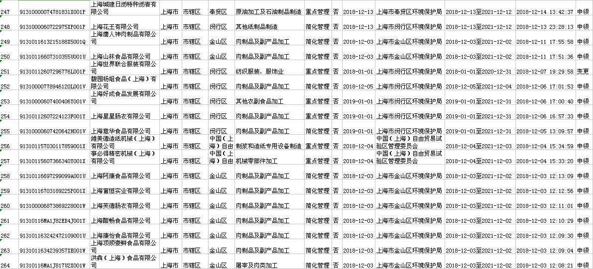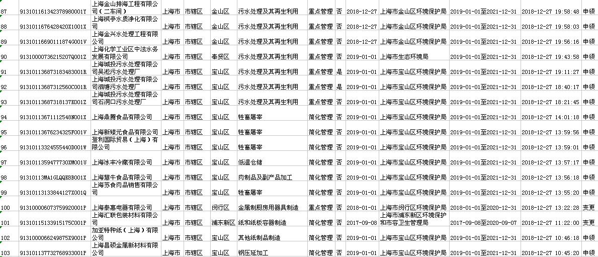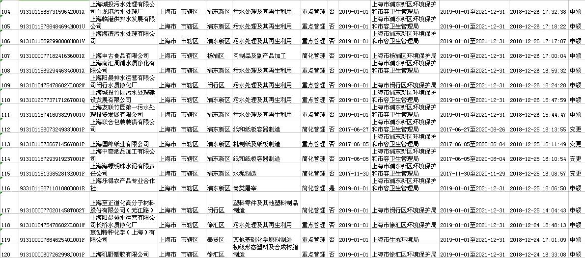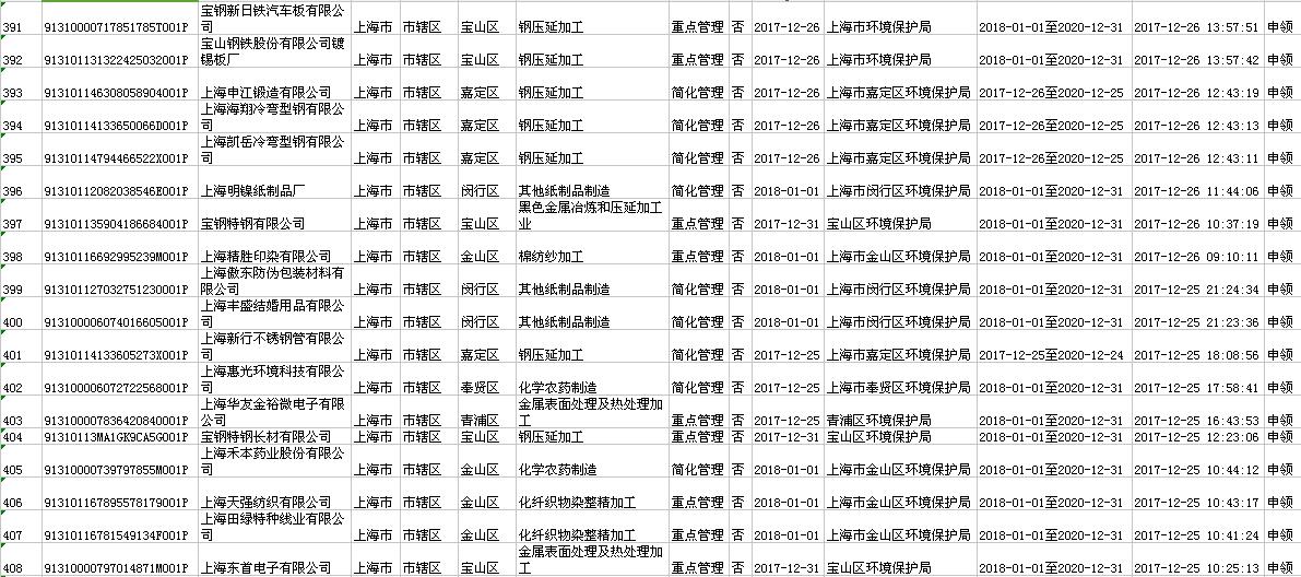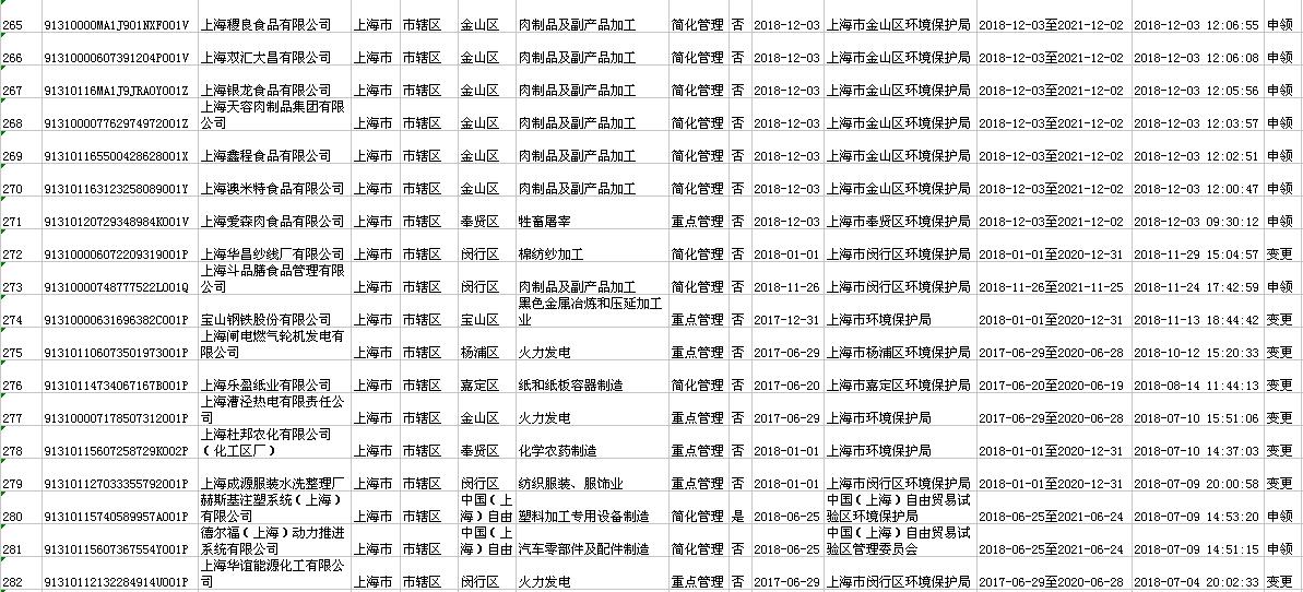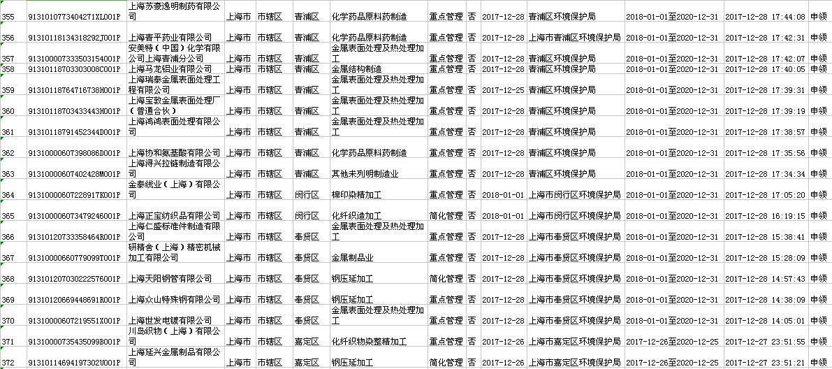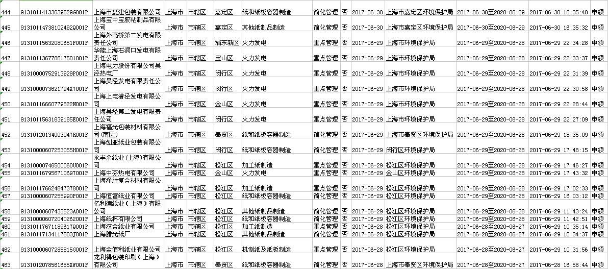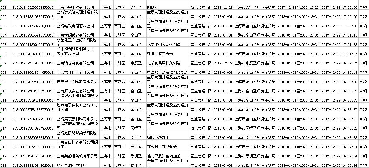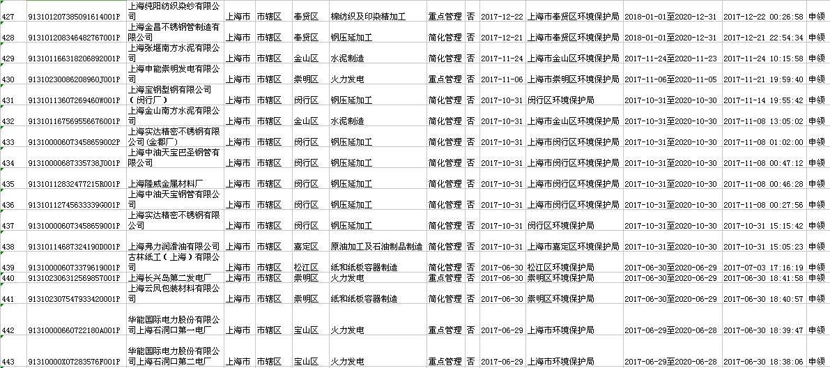 近日,上海市生態(tài)環(huán)境局發(fā)布了上海市排污許可證庫(截止2019年1月24日),匯總了475家具有排污許可證的企業(yè),詳情如下: