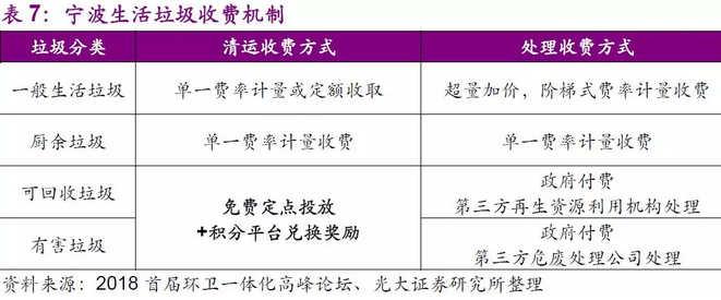 以寧波的生活垃圾收費機(jī)制為例,寧波市于2018年3月底出臺了《寧波市生活垃圾分類實施方案(2018-2022年)》,方案明確了寧波市未來五年的垃圾分類工作目標(biāo),同時明確未來將以“使用者付費”為原則,出臺差別化的生活垃圾處理收費制度。而在寧波計劃推行的收費制度中,亮點在于生活垃圾和廚余垃圾的按費率計量收費,以及可回收垃圾和有害垃圾的費用豁免+積分獎勵原則。