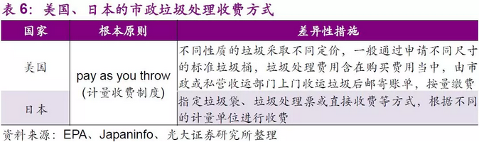 但是隨著垃圾分類和垃圾清運市場化進(jìn)程的逐步完善,我們認(rèn)為未來中國有可能參照以上發(fā)達(dá)國家的收費模式。在2017年12月20日住建部發(fā)《關(guān)于加快推進(jìn)部分重點城市生活垃圾分類工作的通知》(以下簡稱“通知”)中,明確提出要“完善生活垃圾收費政策,逐步建立差別化的收費制度,實現(xiàn)按量收費?!睆V州市作為第一個“吃螃蟹”的中國內(nèi)地城市,《廣州市生活垃圾分類管理條例(草案)》已提請市人大審議,其中首次提出了按照“多產(chǎn)生多收費”等多項原則進(jìn)行收費。2018年7月2日,發(fā)改委發(fā)布《關(guān)于創(chuàng)新和完善促進(jìn)綠色發(fā)展價格機(jī)制的意見》,提出到2020年底前,全國城市及建制鎮(zhèn)全面建立生活垃圾處理收費制度,標(biāo)志著垃圾分類即將進(jìn)入收費時代。