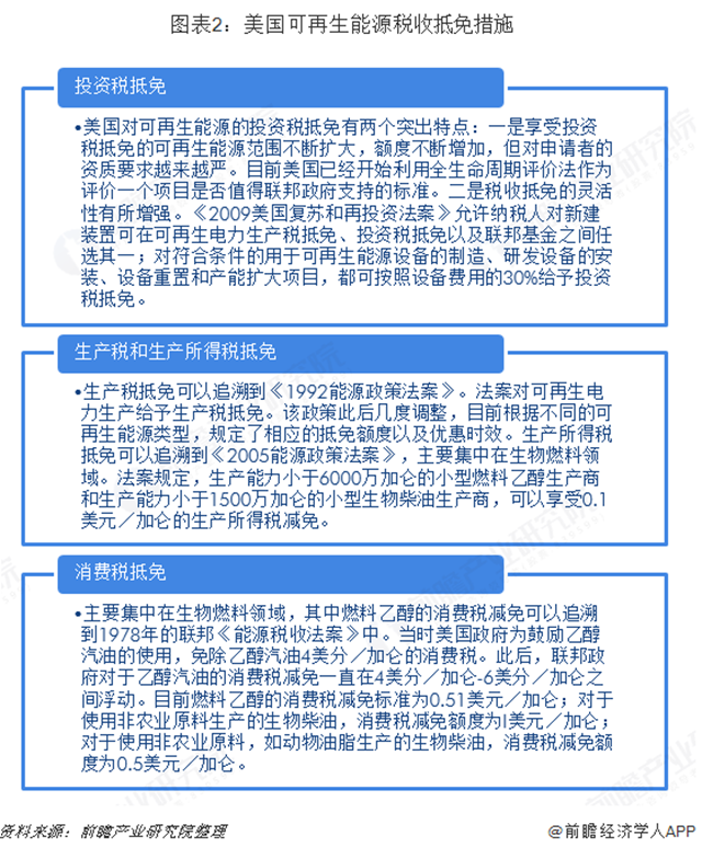 激勵類政策中稅收抵免是聯(lián)邦政府促進可再生能源發(fā)展的最主要的經(jīng)濟措施。聯(lián)邦政府會根據(jù)可再生能源發(fā)展的實際情況,對稅收抵免的覆蓋范圍、抵免額度不斷予以調(diào)整。