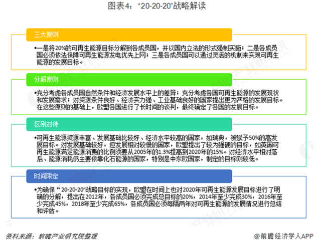 歐盟是最早制定可再生能源量化目標的經(jīng)濟體,歐盟的“20-20-20”戰(zhàn)略提出到2020年溫室氣體排放量將在1990年基礎上減少20%;可再生能源占總能源消費的比例將在2008年8.2%的基礎上提高到20%,其中生物液體燃料在交通能源消費中的比例達到10%;能源利用效率將提高20%,即能源消費量在2006年基礎上減少13%。為了保障“20-20-20”戰(zhàn)略目標的實現(xiàn),歐盟及各成員均啟動了相應的立法,并制定了相應的行動計劃。