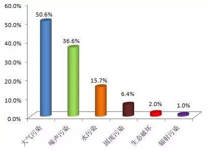 從污染類型來看,1月大氣、噪聲污染舉報較多,分別占50.6%和36.6%,但相比上月分別降低6個和3個百分點,水污染、固廢污染、生態(tài)破壞和輻射污染舉報分別占15.7%、6.4%、2%和1%。