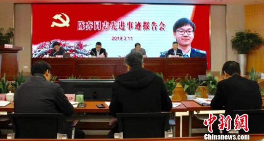 環(huán)保烈士陳奔先進事跡報告會現(xiàn)場?!∨頃匝拧z
