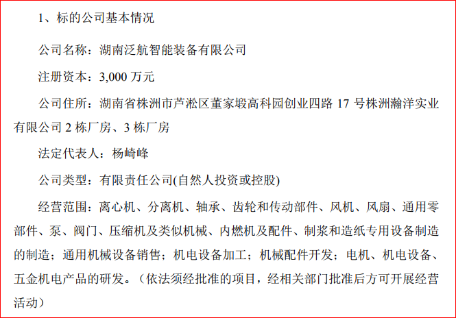 公告顯示,標(biāo)的公司泛航裝備成立于2018 年 3 月,是集離心鼓風(fēng)機(jī)研發(fā)、制造、檢測(cè)、裝配及試驗(yàn)于一體的創(chuàng)新型技術(shù)企業(yè),業(yè)務(wù)范圍包括高速高效離心鼓風(fēng)機(jī)、混合器、機(jī)電設(shè)備的研發(fā)、制造與銷售。