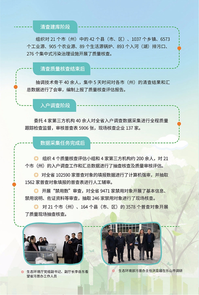 2018年四川省第二次全國污染源普查工作大事記——四川省委、省政府成立了以副省長楊洪波為組長的四川省第二次全國污染源普查領(lǐng)導(dǎo)小組,省政府辦公廳印發(fā)了《四川省第二次全國污染源普查實施方案》,開展技術(shù)培訓(xùn)、普查試點、清查建庫、入戶調(diào)查等工作,圓滿完成了2018年度污染源普查任務(wù)。