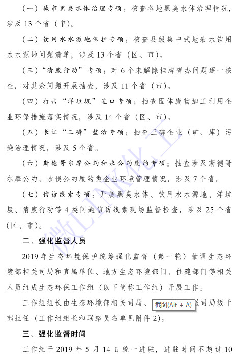 近日,生態(tài)環(huán)境部辦公廳加急印發(fā)《關(guān)于開展2019年生態(tài)環(huán)境保護(hù)統(tǒng)籌強(qiáng)化監(jiān)督(第一輪)工作的通知》,文件里涉及全國(guó)25個(gè)省和直轄市,涉及7個(gè)專項(xiàng)內(nèi)容,并且以加急文件的形式下發(fā)各地相關(guān)部門。這意味著,新一輪的生態(tài)環(huán)境大督查來(lái)了!
