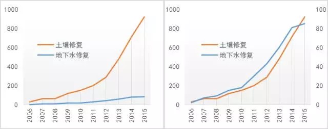 縱觀發(fā)達國家土壤修復行業(yè)近年走過的路線以及國家近年出臺的有關(guān)土壤修復行業(yè)的法律法規(guī)及指導性文件,我們基本可梳理出我國未來土壤修復行業(yè)的發(fā)展路徑和趨勢。污染場地是由土壤和地下水共同構(gòu)成的有機統(tǒng)一體,雨水垂直入滲以及地下水流經(jīng)污染過的土壤時,污染物將從土壤相以溶解和解吸等作用進入地下水相,而污染后的地下水在流經(jīng)未污染或已修復的土壤時,其中的污染物亦會通過土壤的吸附作用從地下水相傳遞到土壤相上。這種土壤和地下水的相互作用,使得場地修復中,土壤和地下水聯(lián)合治理尤為重要,重土壤而忽視地下水必然會導致場地二次污染!事實上,業(yè)內(nèi)專家人士就此早已達成共識。北京建工環(huán)境修復股份有限公司技術(shù)總監(jiān)馬駿就曾多次指出我國修復技術(shù)研發(fā)存在的“重土輕水”現(xiàn)象:“未來污染場地的修復必須土水一體化統(tǒng)籌考慮,否則可能會事倍功半?!敝锌圃和寥浪侮垦芯繂T也指出,由于地下水的流動性,上游被污染地下水會對修復場地造成二次污染。以經(jīng)歷了“拍賣-賠償-修復-再拍賣” 而著名的武漢赫山地塊為例,資料顯示,位于漢江之濱的赫山地塊前身為武漢農(nóng)藥廠,平均污染深度在1.8米,局部最深達9米,而該地區(qū)地下水位平均埋深不到2米,這就意味著流經(jīng)該地塊的地下水必然受到了污染,若治理時僅注重土壤修復,則二次污染將難以避免。而年初曝出的“常隆毒地”事件,因修復工程翻挖污染土壤,致其中揮發(fā)性污染物擴散,致使旁邊的常外學生身體不適,引發(fā)輿論關(guān)注。資料顯示這塊污染場地地下6米均為污染土壤,而場地內(nèi)的地下水埋深不到1米!如若后期不開展地下水修復工作,常隆地塊下的污染物就有著隨地下水的流動擴散至周邊居民區(qū)的風險。然而,由于地下水污染難治理、周期長、隱蔽性強以及缺乏相應(yīng)技術(shù)規(guī)范,實際污染場地調(diào)查和修復過程中,為了節(jié)省費用,往往只強調(diào)土壤污染,而對地下水的重視不足。以專利申請指標為例,當前地下水修復專利近10來總數(shù)僅為500項,遠低于土壤修復4000余項,受國家環(huán)保宏觀政策水十條和土十條影響,近年來每年申請專利雖逐步增加,2015年申請量為85,而同期土壤專利申請量卻達952項,竟不到土壤專利量的1/10。通過上圖還可看出,土壤和地下水修復專利申請趨勢基本一致,這也側(cè)面反映了二者是一個有機整體,不能單獨人為分割之,從而進一步印證了我們關(guān)于土壤地下水聯(lián)合治理的大趨勢。而當前地下水專利仍遠低于土壤修復專利申請,表明了地下水修復市場的巨大空間,也為相關(guān)公司進行相應(yīng)提前布局和搶占先機提供了機會! 圖: 土壤及地下水修復專利申請關(guān)鍵詞文字云比較甚至,土壤修復和地下水修復的專利關(guān)鍵詞中,都能看到二者密不可分的身影。事實上,美國在場地修復之初,也曾走過同樣的路線。根據(jù)超級基金場地逐年修復對象統(tǒng)計,美國最早期也只注重土壤修復,隨著對場地修復的認識不斷加深而開始重視地下水修復乃至土壤和地下水聯(lián)合修復,到現(xiàn)在實現(xiàn)對場地進行系統(tǒng)的修復和管理。如今土壤和地下水聯(lián)合治理已成為先行國家的業(yè)界共識。以超級基金針對1982-2011年期間對1468塊污染場地所展開的修復而言,單獨針對土壤修復的僅占14%,而地下水修復以及地下水和土壤聯(lián)合修復則占到了59%。圖:美國超級基金1468塊場地修復對象統(tǒng)計(1982-2011)考慮到我國國情,盡管短期內(nèi)仍很難改變場地修復所主導的土壤修復市場,也難以改變場地修復中的重土輕水現(xiàn)象,但我們?nèi)哉J為土壤地下水修復聯(lián)合修復將成為未來趨勢。據(jù)《全國土壤污染狀況調(diào)查公報》顯示,我國長三角、珠三角、東北老工業(yè)基地等區(qū)域土壤污染問題突出,西南、中南地區(qū)土壤重金屬超標問題也比較嚴重,由此可見南方地區(qū)土壤整體污染更加嚴重,未來將是我國主要的土壤修復市場。與此同時,南方地區(qū)地下水位又普遍埋深較淺,如圖示,南方地區(qū)地下水埋深較淺,埋深小于2米,北方地區(qū)總體自東向西埋深增加,多數(shù)地區(qū)在6米以上。因此北方區(qū)域的場地修復,有時只要把污染場地的土壤修復好就行,地下水可以不管。但對于地下水埋深很淺的南方而言,忽視地下水修復將導致二次污染。因此,隨著國家針對場地污染立法的實施,監(jiān)管的嚴格,保障修復效果的持續(xù)性、強調(diào)一體化修復勢在必行。圖: 黃淮海平原 2016 年 1 月初地下水埋深等值面圖(來源:水利部2016年《地下水動態(tài)月報》)說句題外話,年初水利部公開的2016年1月《地下水動態(tài)月報》顯示,全國地下水普遍“水質(zhì)較差”,八成地下水不能飲用,一下子就挑起了大眾神經(jīng)。雖然官方隨后辟謠稱不是水源地地下水,但這一觸目驚心的數(shù)據(jù)仍讓人咋舌。當然,從市場角度來看,這里面也蘊藏著無限商機!考慮到土壤及地下水修復是一個復雜和長期的過程,從實際來看(資金、時間或技術(shù)等層面),很多場地在短時間完全修復是很困難的。針對這種情況,上世紀九十年代國外逐漸把“制度控制”(institutional c