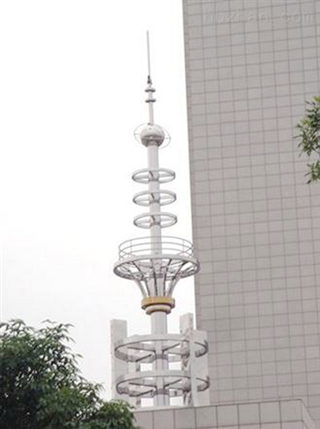 與現(xiàn)代化建筑遙相呼應,集通訊、避雷、防空、觀光、裝飾等功能為一體,美觀大方。塔體外部包有不銹鋼板或鈦金板,塔體上安裝各種不銹鋼環(huán),塔上放置避雷設施、通信天線等。塔體鋼構件作熱鍍鋅防腐處理,耐腐蝕性能好。