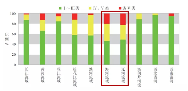 淡水治理方面,全國(guó)1935個(gè)地表水質(zhì)斷面點(diǎn)位中I~III類占比達(dá)到71%,較上年上升3.1個(gè)百分點(diǎn);劣V類比例為6.7%,較上年下降1.6個(gè)百分點(diǎn)。七大流域、浙閩片河流、西北諸河、西南諸河等流域以及重點(diǎn)水庫(kù)湖泊的水質(zhì)均有不同程度的上升,目前西南、西北諸河的水質(zhì)為優(yōu),長(zhǎng)江、珠江流域及浙閩片河流水質(zhì)良好,黃河、松花江、淮河流域以及太湖與滇池水質(zhì)輕度污染,海河、遼河流域以及巢湖水質(zhì)中度污染。