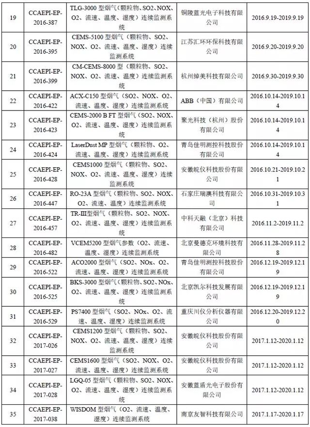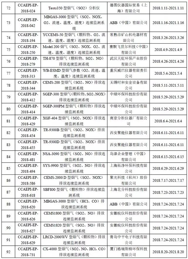 CEMS儀器設(shè)備認(rèn)證獲證單位名錄